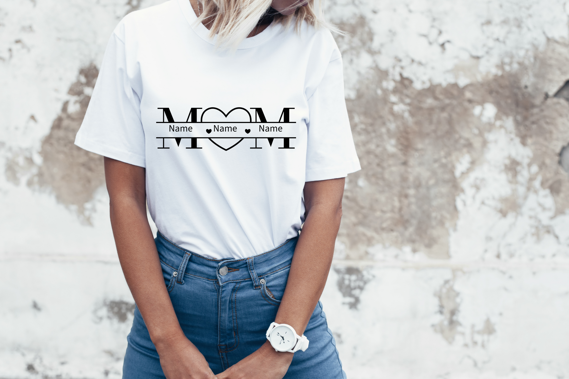 For this design we can add your kids' names between Mom. There is a box for notes under your cart when you're ready to check out and you just put in the names that you like to put